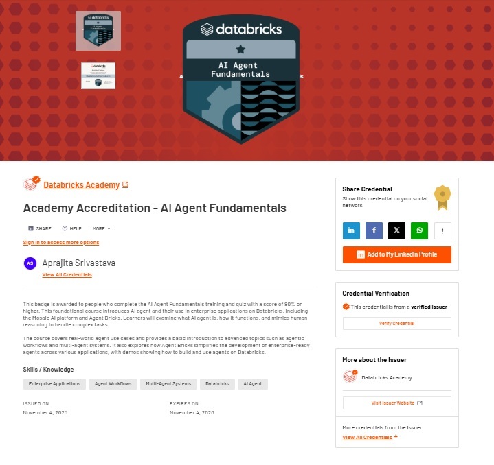 I am a Senior Technical Solutions Engineer at Databricks with a strong background in analytical platforms, particularly as a **Subject Matter Expert for AWS OpenSearch**. My technical journey includes working on critical services like Kafka, AppFlow, EC2, and Lambda, backed by five Databricks Accreditations, four AWS Certifications and a B.Tech in Computer Science & Engineering.